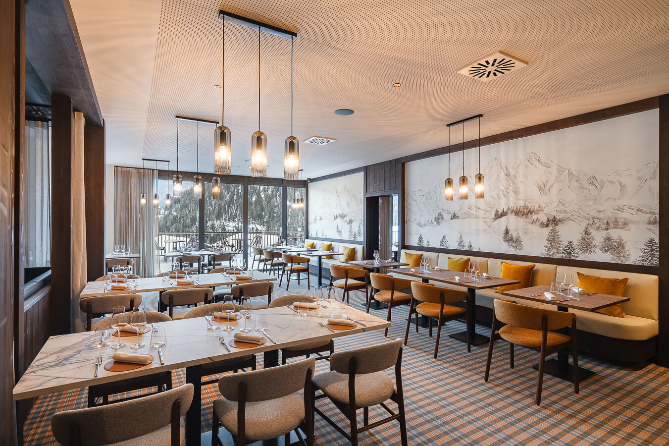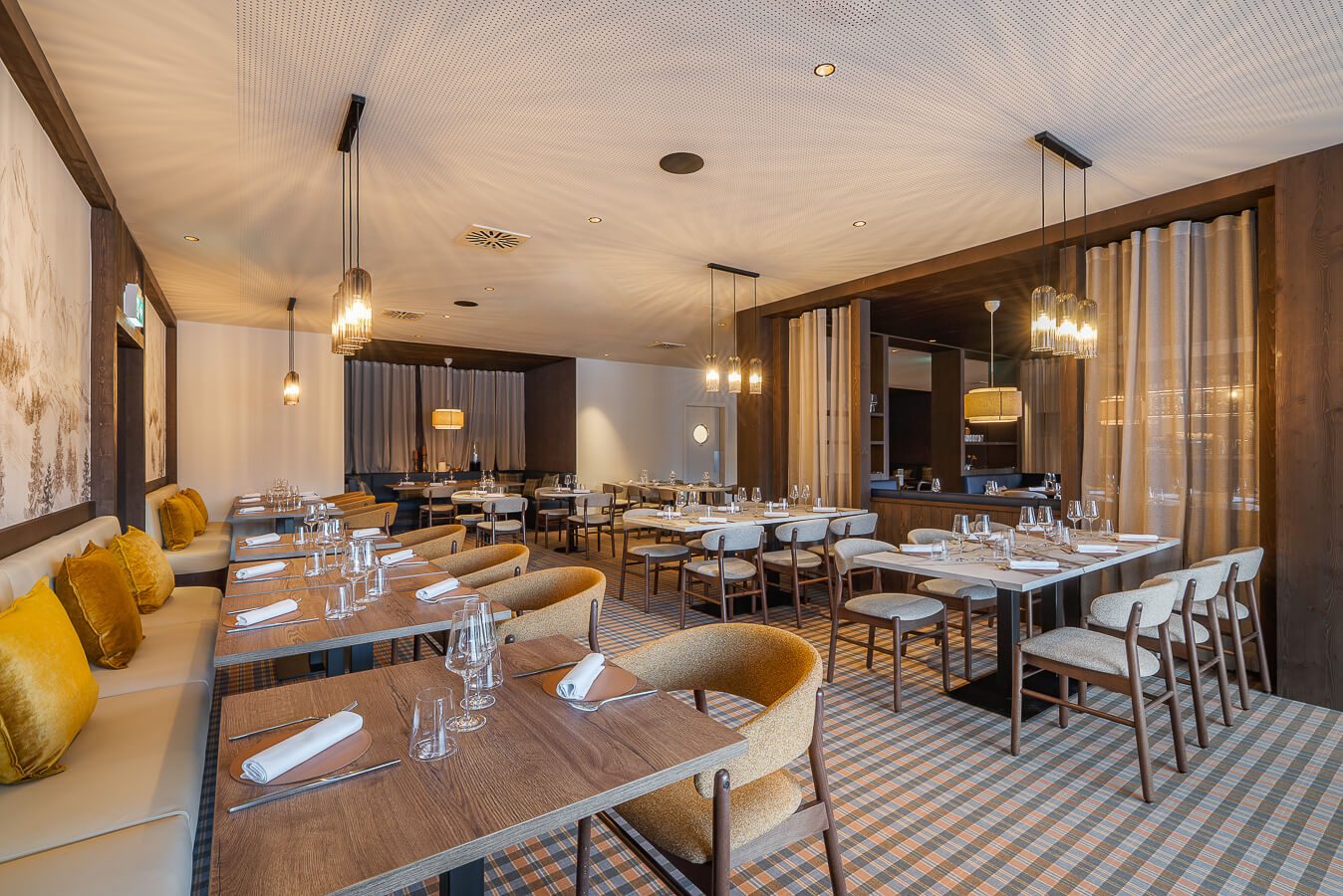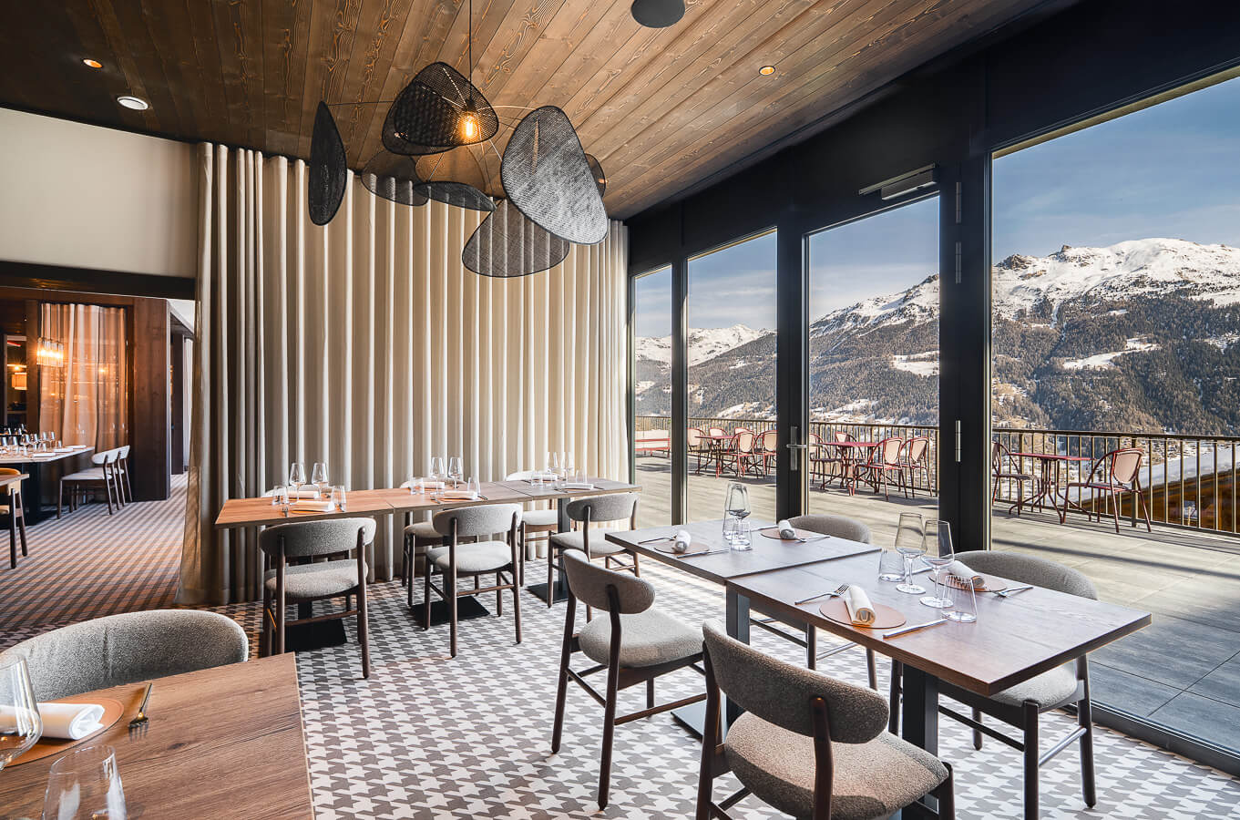 In einer gemütlichen und urigen Atmosphäre lädt Sie das Restaurant Nava im ersten Stock der 5-Sterne-Ferienanlage Guernerés ein, seine außergewöhnliche Terrasse mit spektakulärem Blick auf die Berge und die majestätischen Pointes de Nava zu genießen. Die holzgetäfelte alpine Atmosphäre bietet einen ruhigen Rückzugsort für den kulinarischen Genuss. Hier schafft die Liebe zum Detail ein ideales Ambiente, in dem Komfort, sommerliche Aromen und Geselligkeit zu einem unvergesslichen kulinarischen Erlebnis in den Bergen verschmelzen.